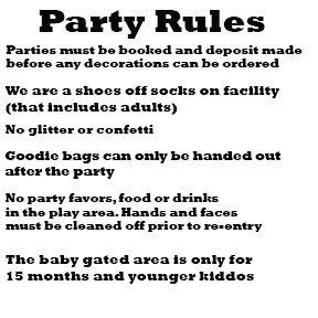 (no glitter or confetti allowed at all. No party favors allowed in playroom)